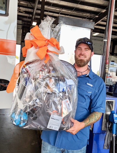 It was truly a company-wide effort. This year each department had a hand in crafting nine “amazing” gift baskets that were given away as prizes. The Extended Coverage team won the internal competition, designing a replica Big G trailer that held all the goodies that were included in the package. Driver Brandon Jordan won the prize.