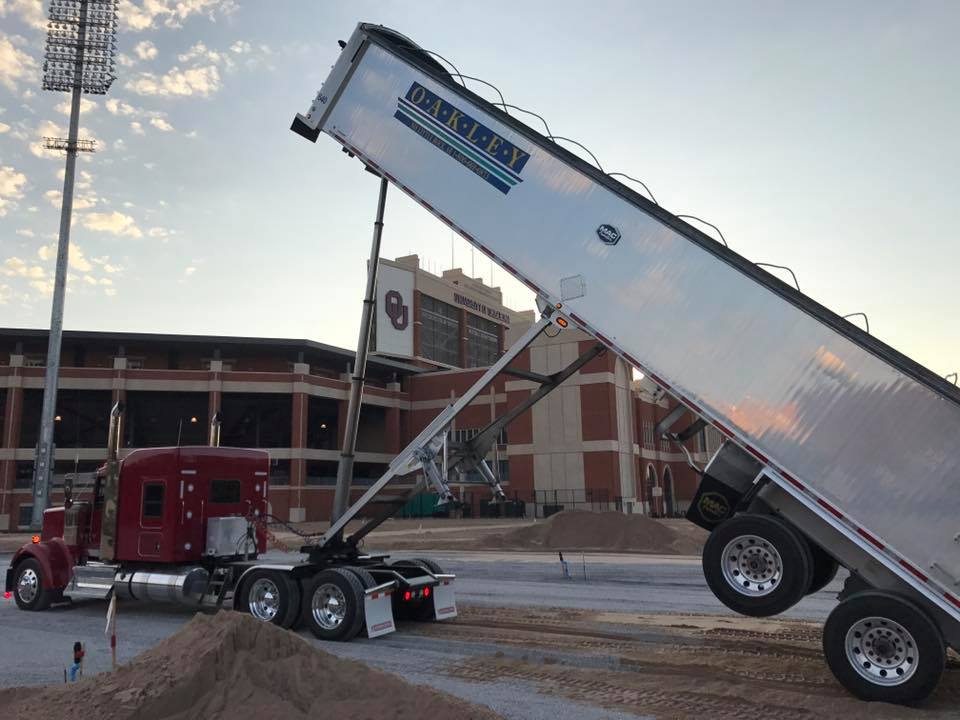 Oakley has moved material for at least six major-league baseball teams (including the 2019 playoff-bound Yankees, Astros and Braves), several spring training sites, the Dallas Cowboys’ new practice facility and sporting venues at the universities of Arkansas, Oklahoma, Texas A&M and Tennessee. It also has brought sand to major golf championship courses at Medinah in Illinois and Oak Tree in Oklahoma. They’ve even had inquiries from TD Ameritrade Park in Omaha, home of the College World Series.