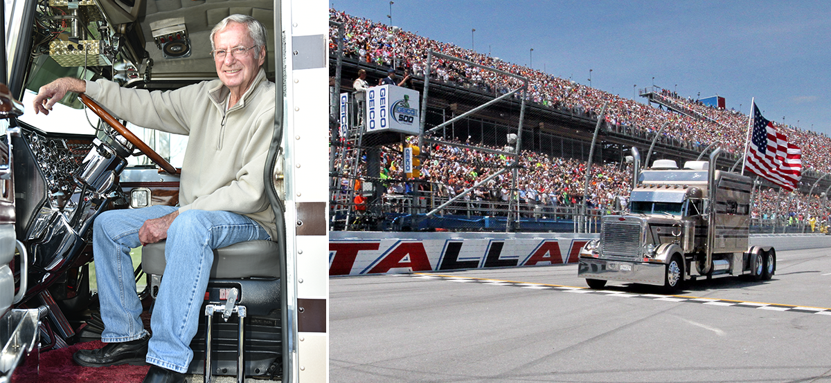 Since 2001, few sights in sports have been more patriotic than that of Ray’s gold, brown and chrome Peterbilt truck, adorned with Ol’ Glory whipping in the wind, making its way down the Talladega frontstretch prior to the start of races. Over the years, a tremendous chorus has exploded into cheers by hundreds of thousands of fans during each pass by, creating a tradition that has left many emotional and full of American pride - none more so than the man who started it all.