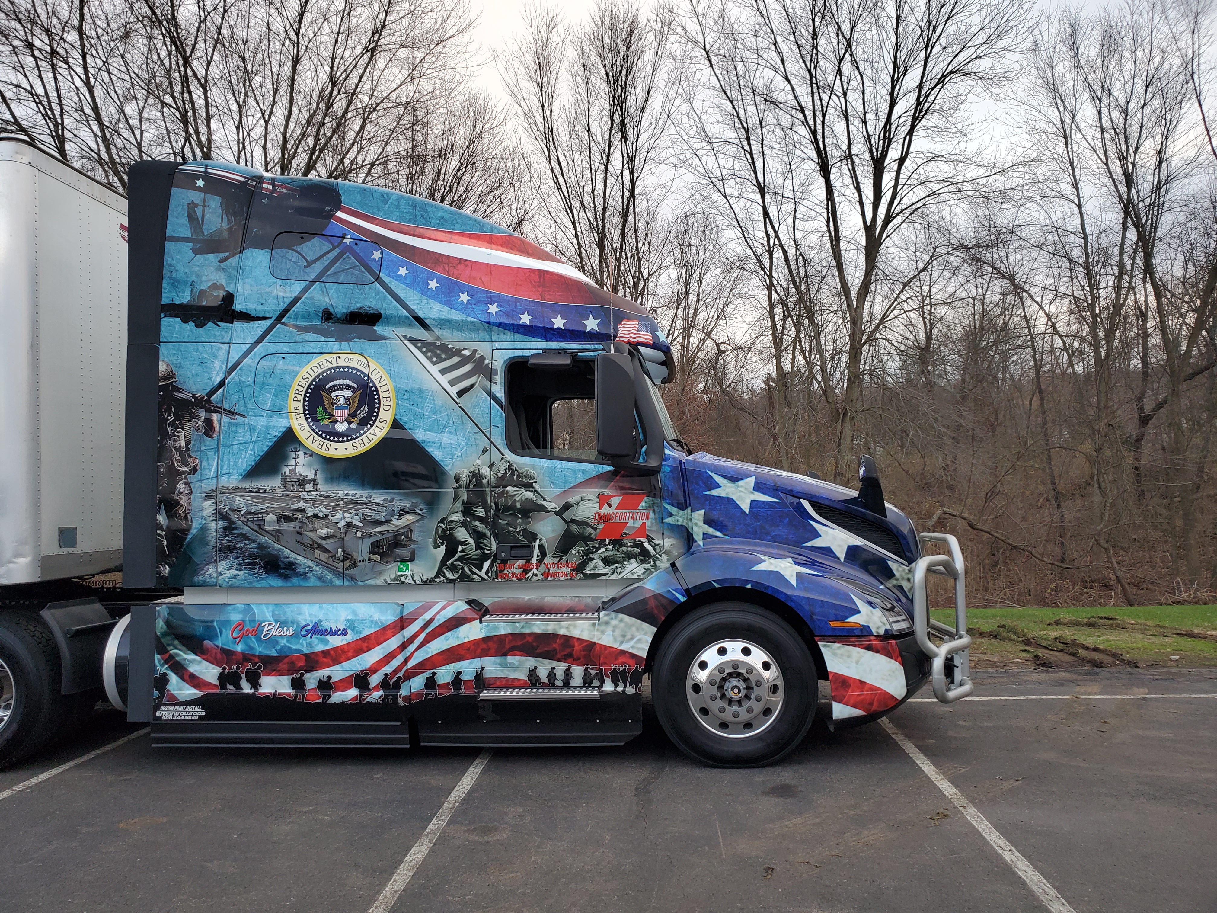 The carrier added a second military-themed Volvo 860 in early 2019 and has plans to wrap one of its 20 new Peterbilt 579s later this summer.