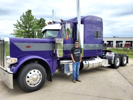 He said Peterbilt sales specialist Melissa Ramsey made the whole process “quick and easy.” It is a sweet ride, with a purple paint scheme that drew his eye, a 565 Cummins engine with boss power and a cool sound system to play his oldies, country and Dave Ramsey. He made a short cattle run on his maiden trip and already has more than 7,000 on it.